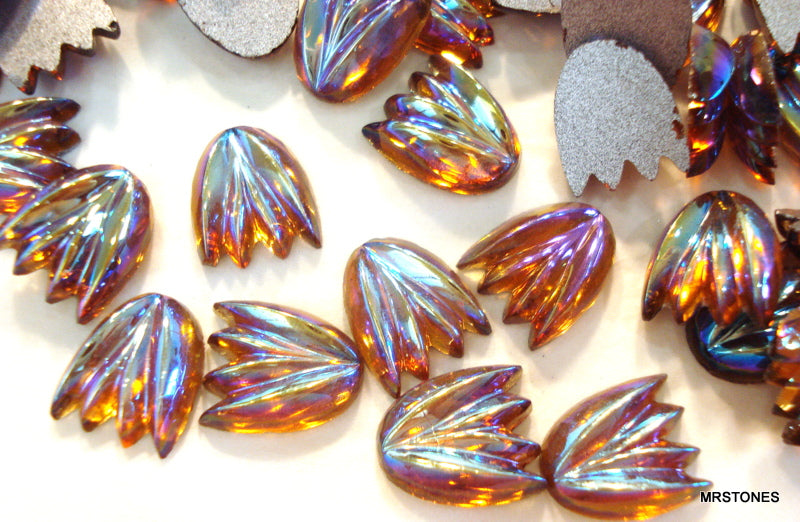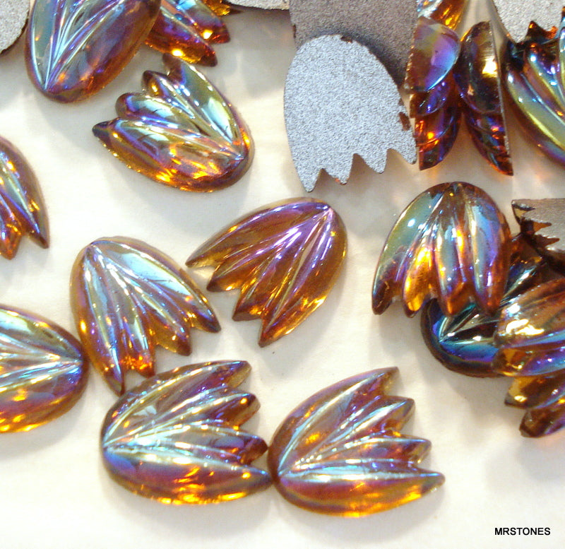 12x10 mm Smoked Topaz AB Flat Back Flowers Claw Silver Foil Vintage Glass West Germany Stones.