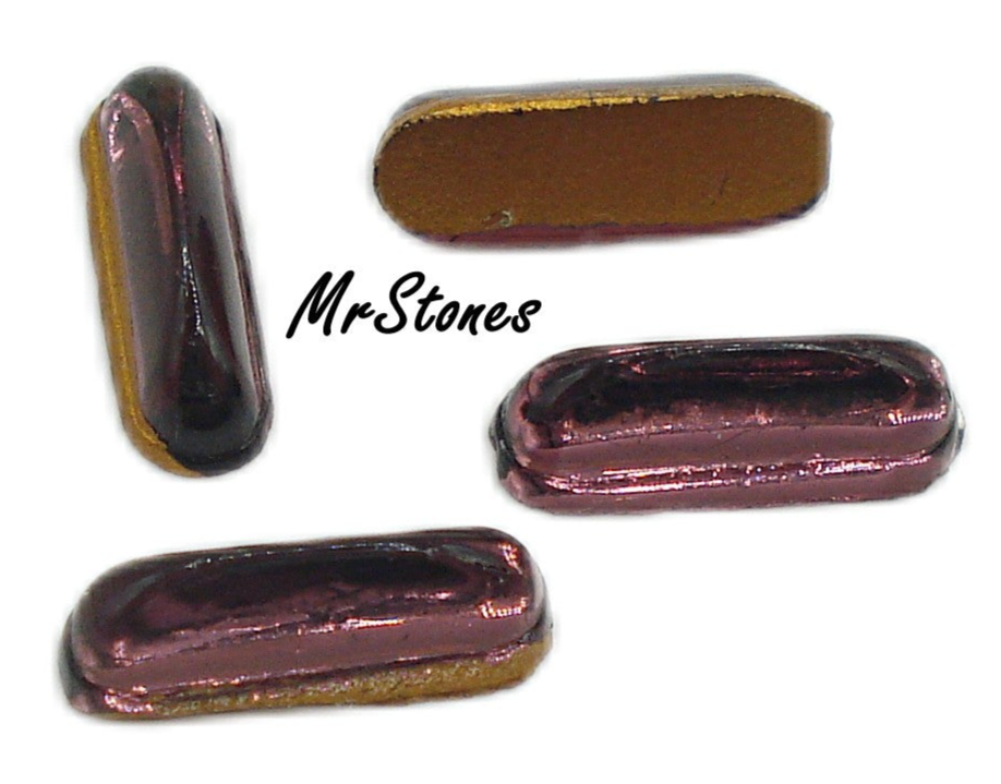 12 x 4 x 4.5 mm (2195) Amethyst Purple Oval Cabochon High Dome with Spine Gold Foiled Vintage Glass Western Germany Stones.