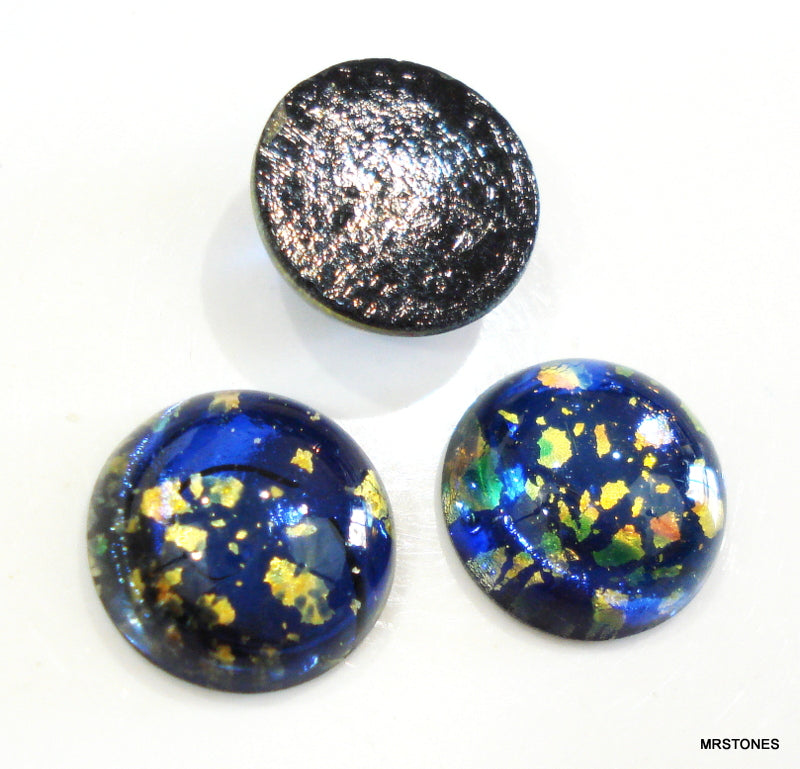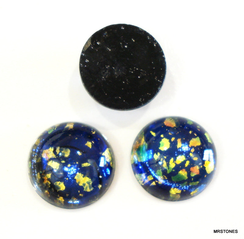 13 mm 13.0 (1684) Black Opal Round Cabochons.  Vintage Glass Czech Stones.