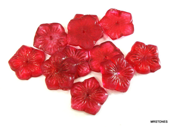 13 mm 13.0 Siam Glass Flower Flat Back 1mm Center Hole Bead.