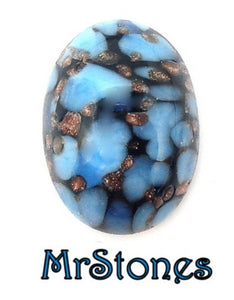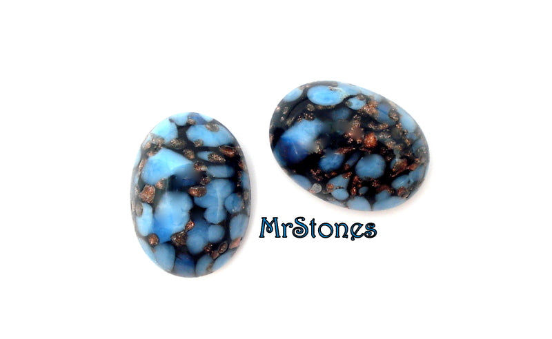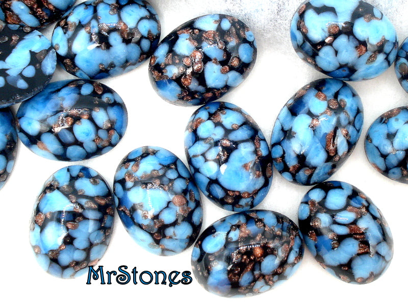 14x10 mm (1685) Blue Matrix Black Copper Glitter Veins Ovals Cabochons Preciosa Czech Glass Stones.