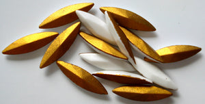 15x4 mm (4200/2) TTC Chalk White Milk Glass Pointed Back Marquise Rhinestones. Gold Foiled.