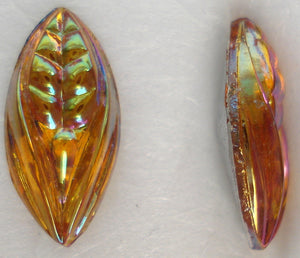 15x7mm (LEAF) Topaz AB Marquises Leaves. Navette German Vintage Glass Stones. $0.75 each