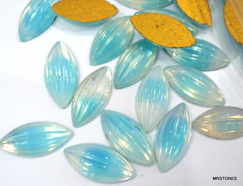 12x7mm Light Sapphire Sabrina Ribbed Marquise Flatback Glass Leaves 4pcs/$1.00