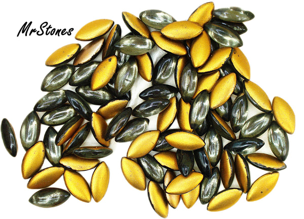 15x7 mm (3175) Glass Black Diamond Marquise Navette Gold Foiled Cabochon.