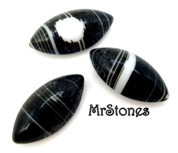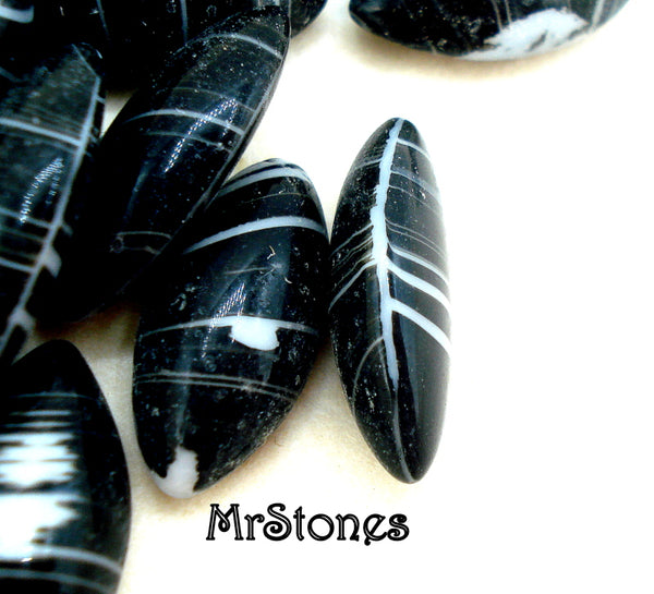 15x7mm (3175) Black White Stripe Bombe Cut Marquise Navette Cabochon
