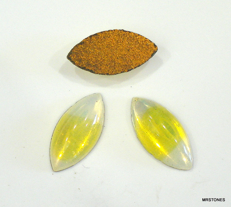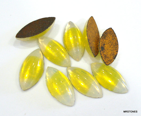 15x7 mm (3175) Yellow Sabrina Marquise Navette Cabochons.  Gold Foiled Vintage Glass Stones.