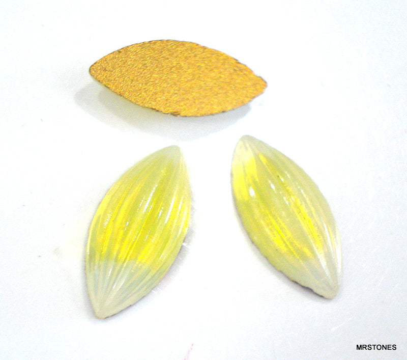 15x7 mm (3175) Yellow Sabrina Ribbed Marquise Navette Flat Back Gold Foiled Vintage Glass Stones.