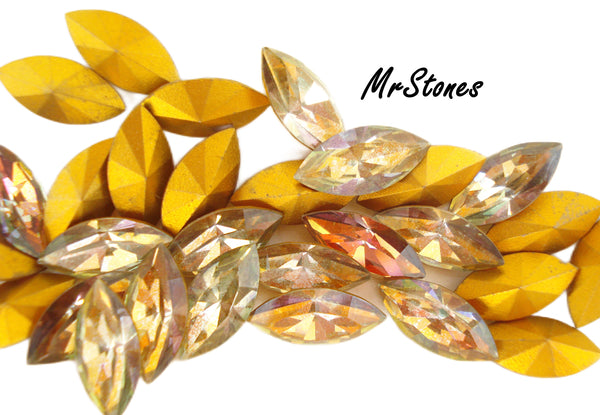 15x7 mm (4200) Vitrail Medium Marquise Navette Swarovski Art. 300 Gold Foiled Vintage Rhinestones. Color #2