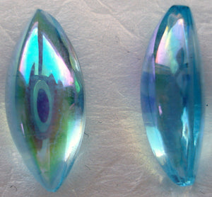 15x7 mm (3175) Glass Unfoiled Aqua AB Bombe' Cut Marquise Navette Cabochons. $0.75 each