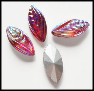 15x7MM (LEAF) Siam AB Marquises Leaves. Navette German Vintage Glass Stones. $0.75 each