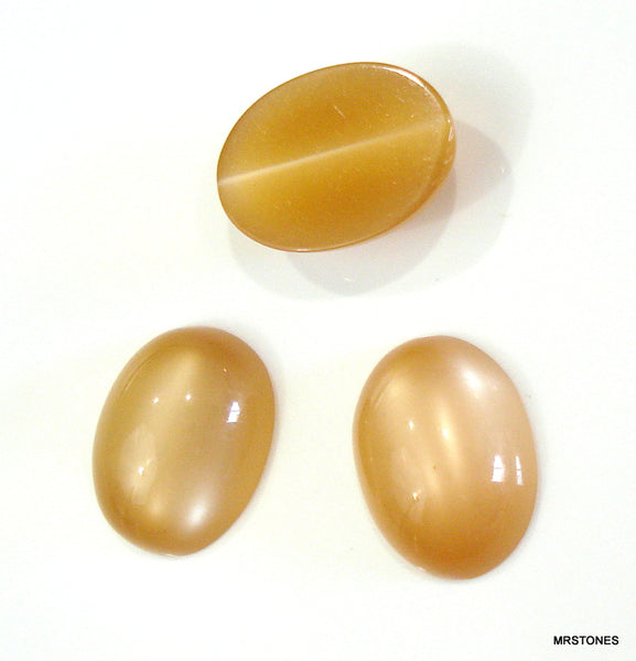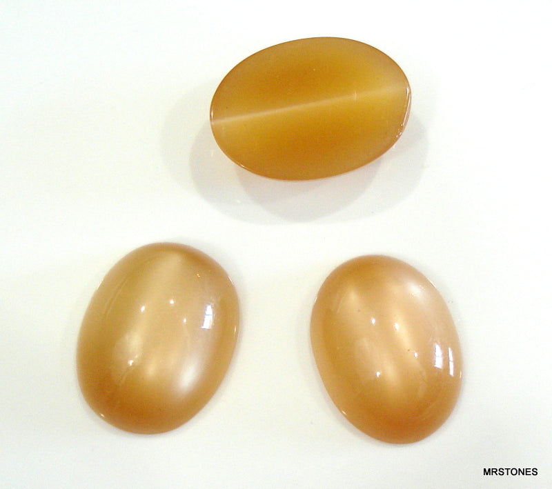 16x12 mm (SSCEO) Light Brown Fiber Optic Cat's Eye Ovals. Cabochon Synthetic.