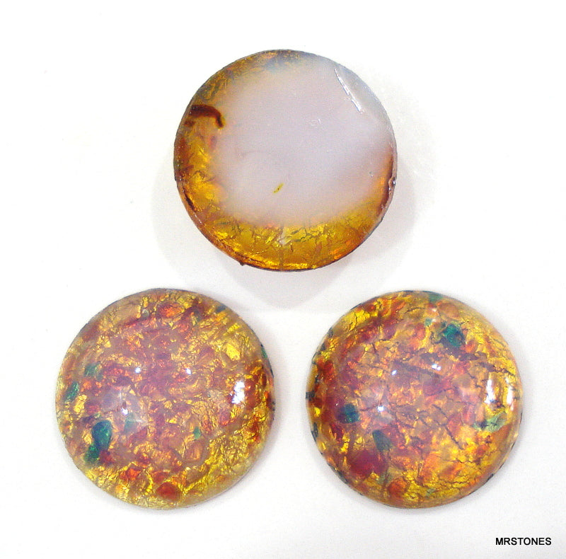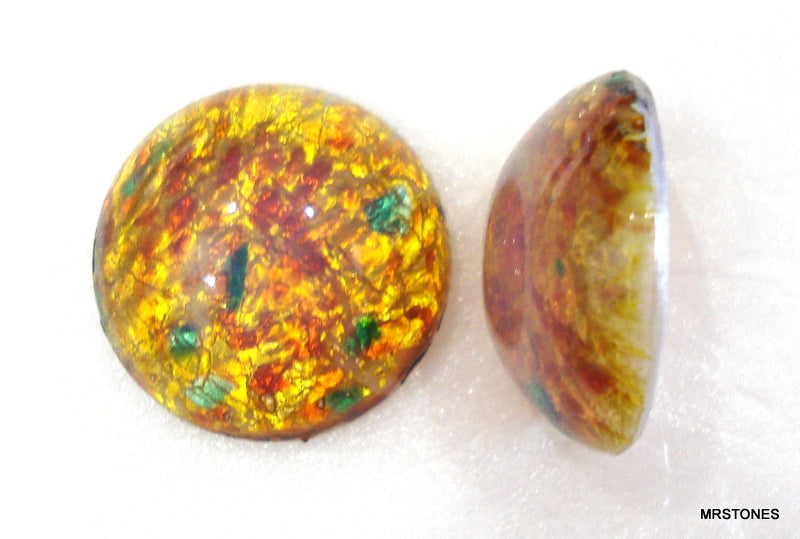 18 mm 18.0 (1684) Fire Opal Rounds Cabochons Glass Czech Vintage Stones.