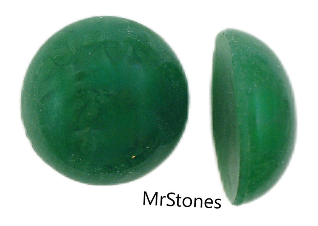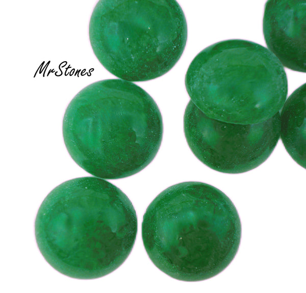 18 mm 18.0 (2194) Jade Green Glass Round Cabochon Japan Vintage Stones.