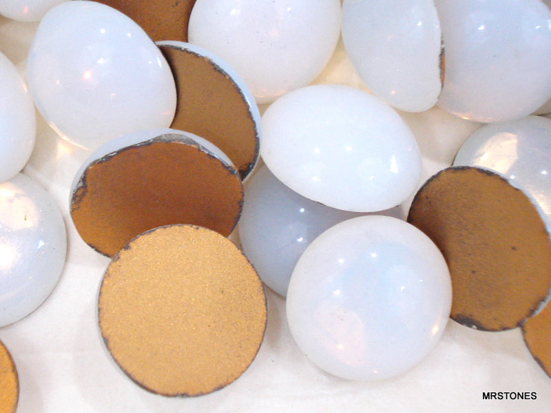 18 mm 18.0 (2194) White Opal Rounds Cabochons Gold Foiled Vintage West German Glass Stones.