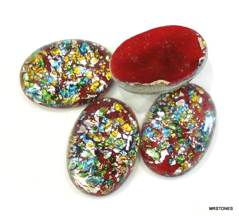 18x13mm (1685) Glass Green Red Foil Opal Oval Cabochon