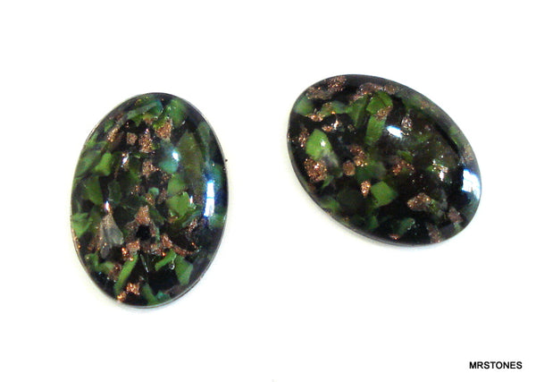 18x13mm (1685) Glass Opal Green Gold Stone Oval Cabochon 4.2mm Dome
