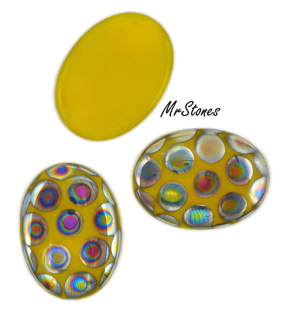 18x13 mm (1685) Shiny Yellow Peacock Oval Cabochon Low Dome 3mm Foiled Glass Czech Stones.