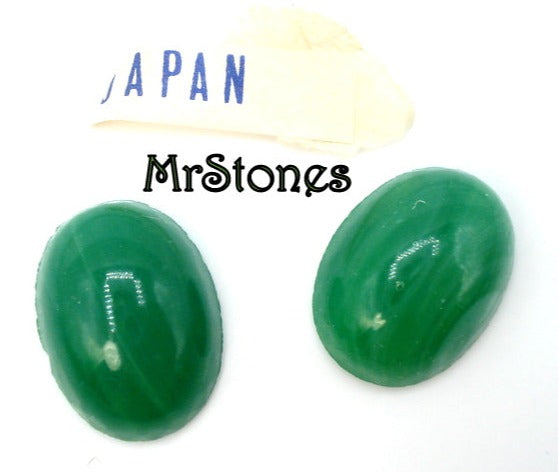 18x13 mm (2195) Striped Jade Oval Cabochon Japan Vintage Glass Stones. 6.2mm dome.