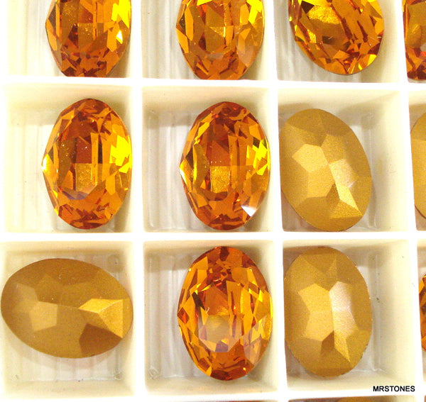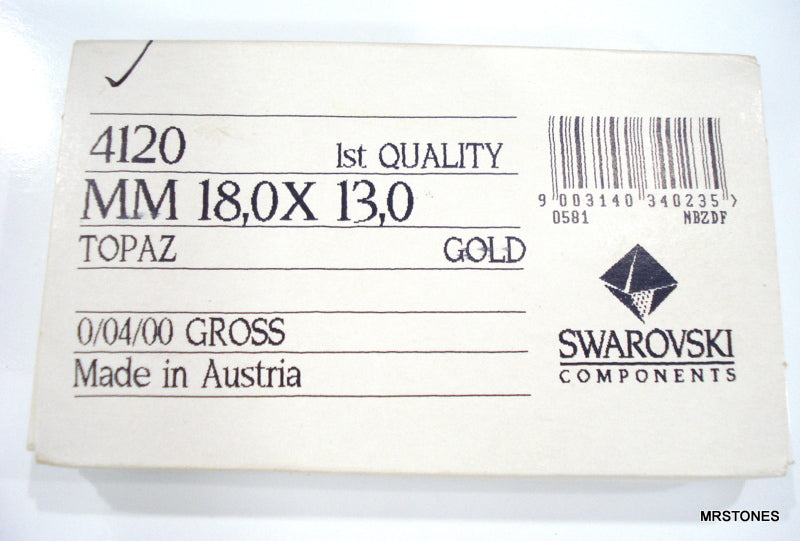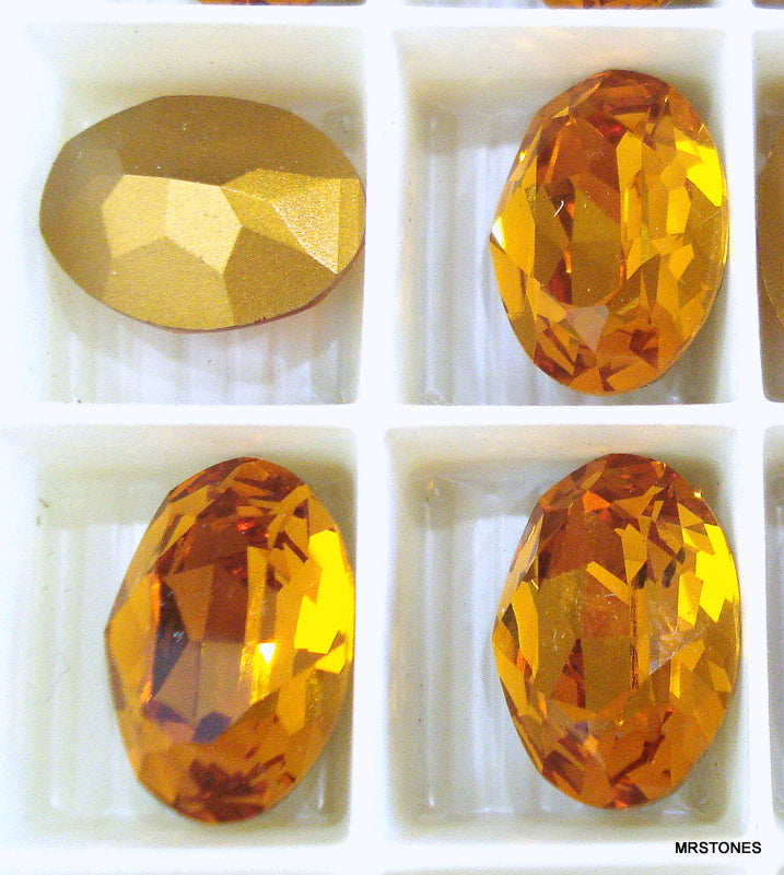 18x13 mm (4120) Topaz Step Cut Ovals Gold Foiled Pointed Vintage Swarovski Rhinestones.