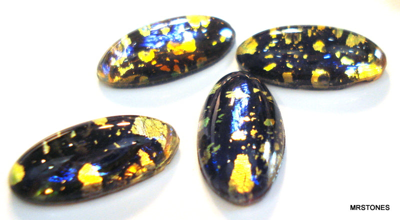 18x9 mm (1685) Black Opal Oval Glass Cabochons Vintage Stones.