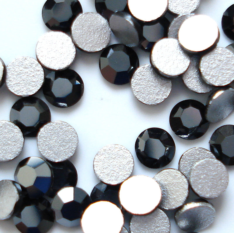 2.5 - 2.6 mm (2000) (9ss) Jet Hematite Rounds Flat Backs Swarovski Rhinestones.