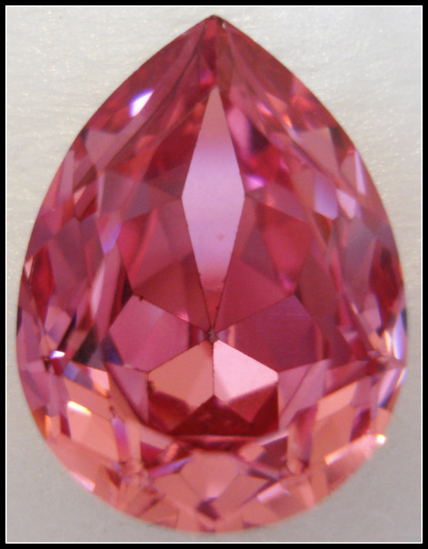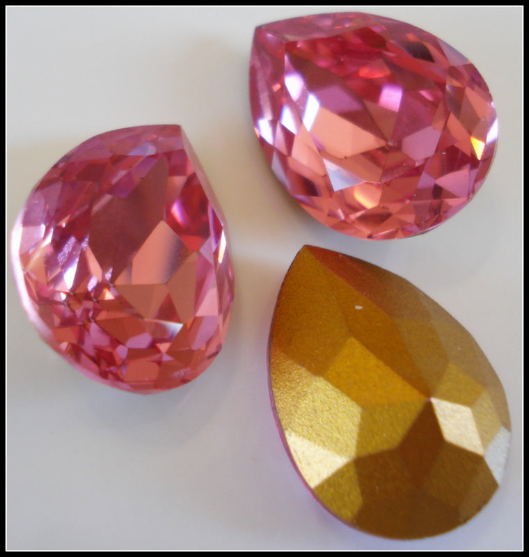 20x15 mm (4320) Machine Cut Gold Foiled Rose Pink Pointed Back Rhinestone Pendeloque Pears.