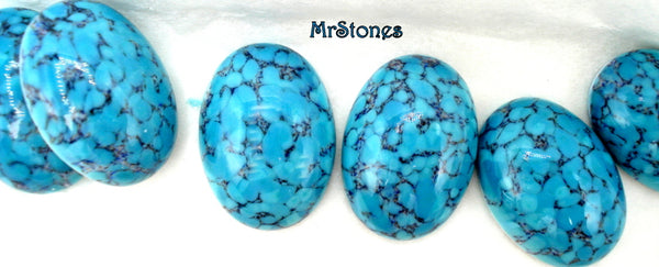 25x18 mm (1685) Turquoise Matrix Dark Brown #2 Veins Ovals Glass Cabochons Preciosa Czech Stones. (#04390)