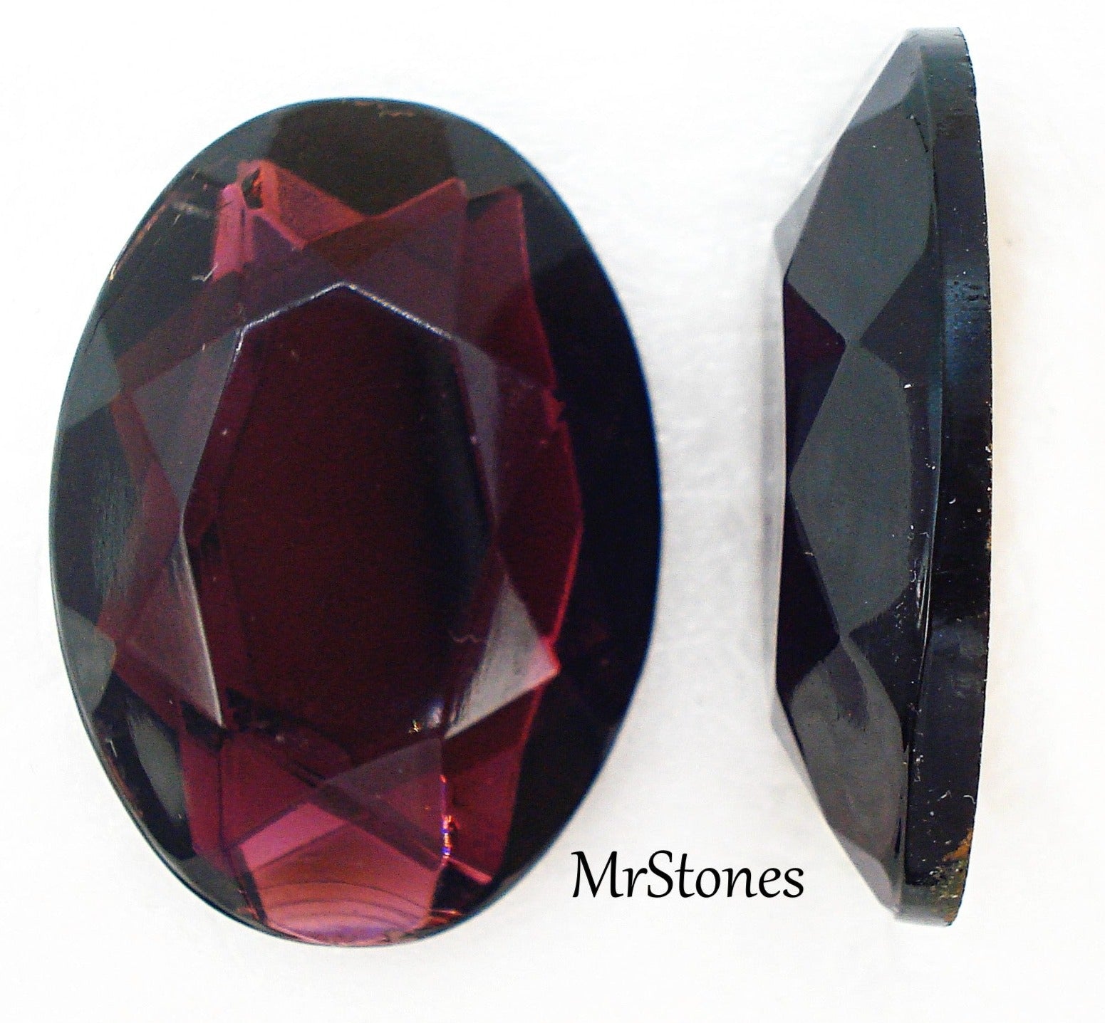 25x18 mm (2100/2) Amethyst Purple Oval Rose Cut Flat Backs Gold Foiled Vintage Rhinestones.