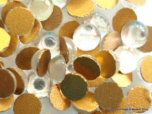3.75 mm (2194) Crystal Round Cabochons. Gold Foiled Vintage Glass Stones.