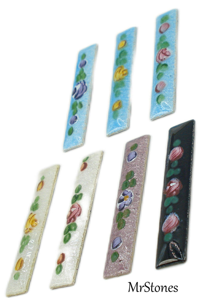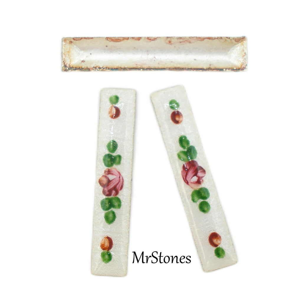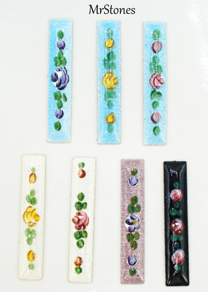 36x7 mm Bar Panels Enamel Metal Guilloche Flowers Floral 2pk/$1.50