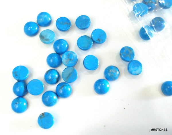 3 mm - 4 mm Natural Howlite Dyed Turquoise Blue Color Rounds Cabochons.