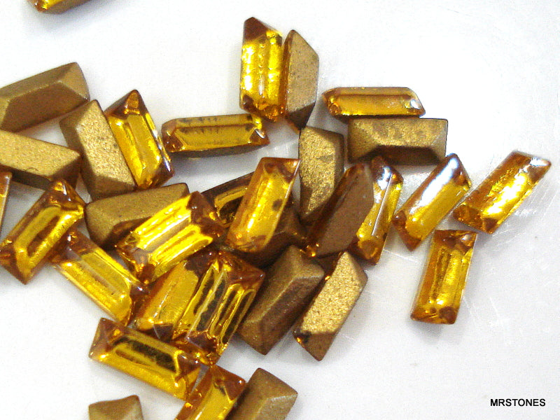 4x2 mm (4500/2) TTC Topaz Baguettes Gold Foiled Pointed Back Vintage Rhinestones.