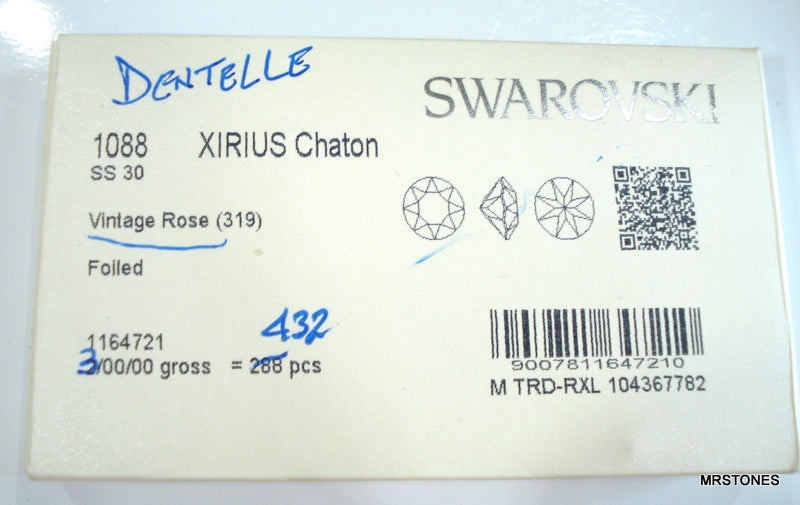 6.3-6.5 mm 6.4 (30SS) (1200) (1088) Vintage Rose Dentelles.  Round Foiled Pointed Back New Swarovski Rhinestones.