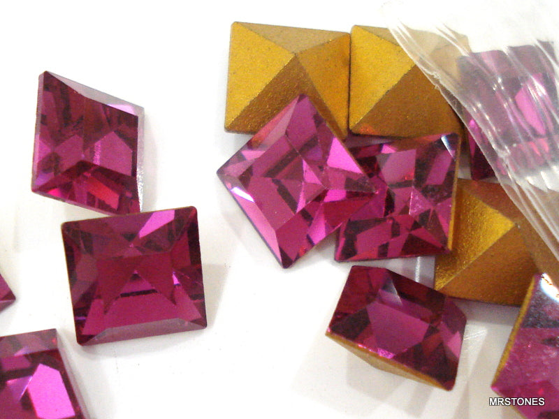 8 mm 8.0 (4400) Fuchsia Pink Squares. Vintage Swarovski Gold Foiled Pointed Back Rhinestones.
