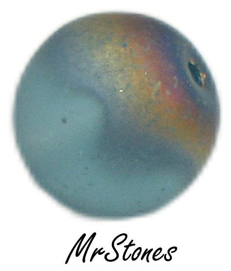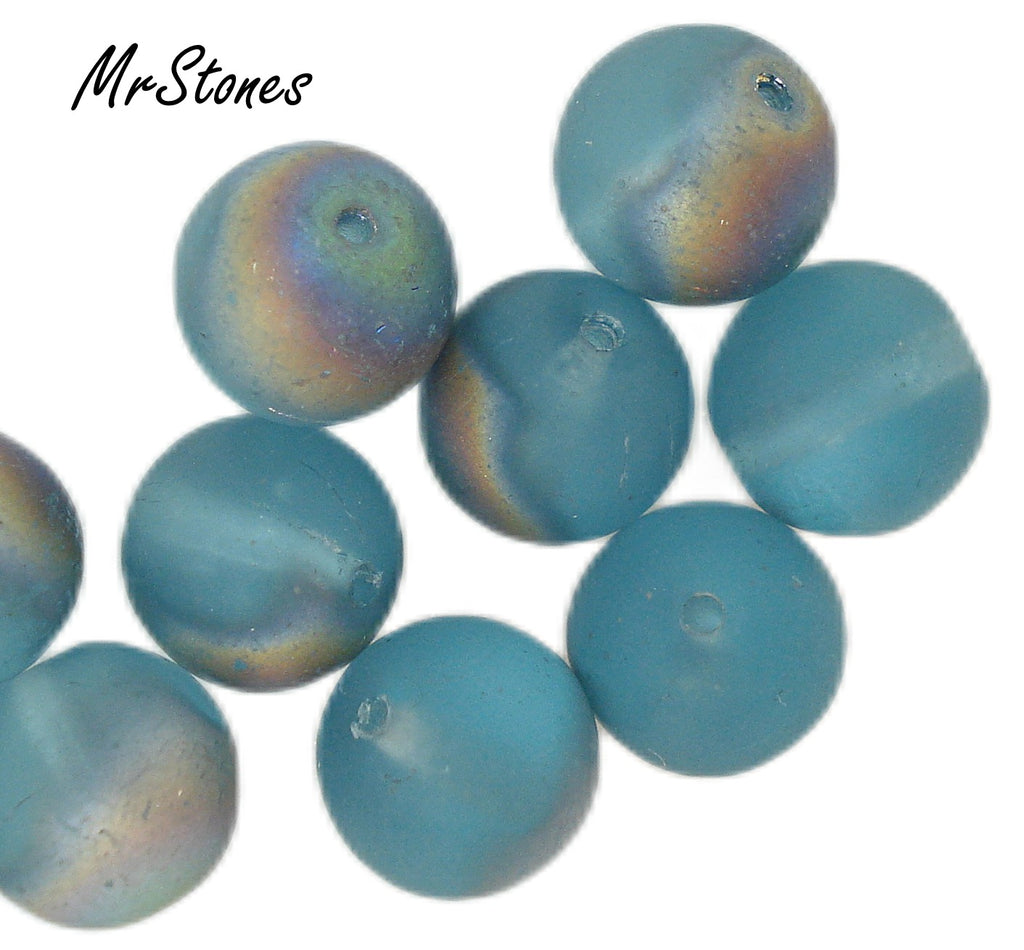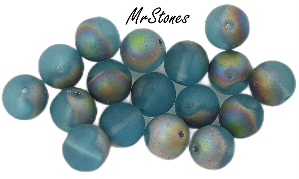 ~8mm 8.0 (7.7mm) Aqua Iridescent Vintage Glass Beads.