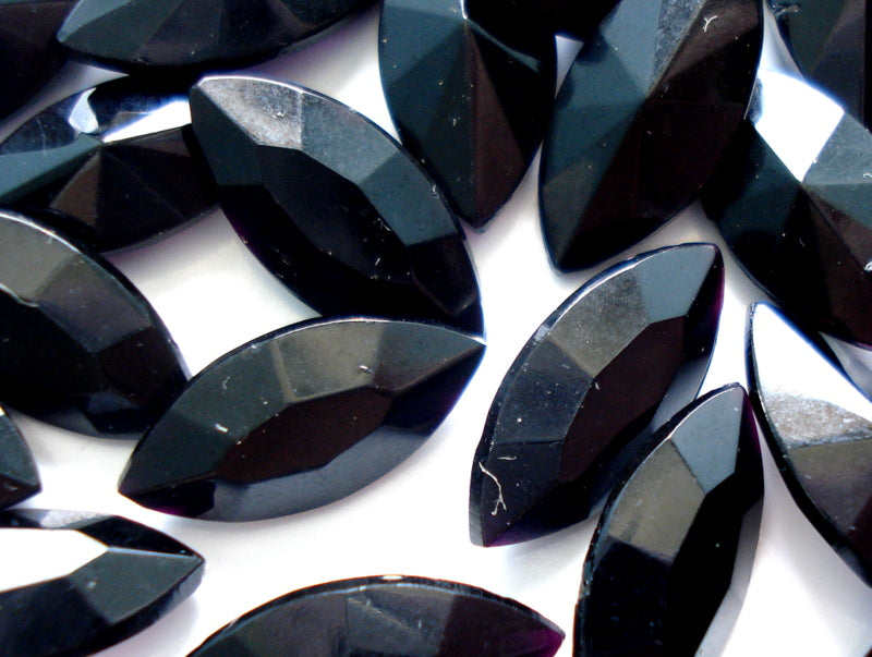 8x4 mm (4200/2) TTC Jet Black Marquises Navettes Unfoiled Vintage Rhinestones.