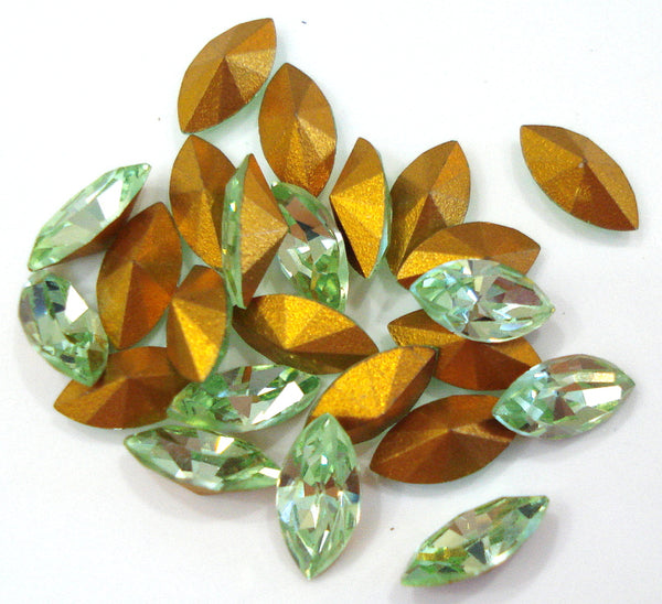 8x4 mm (4200) Chrysolite Pointed Back Foiled Marquise Navette Vintage Rhinestones.
