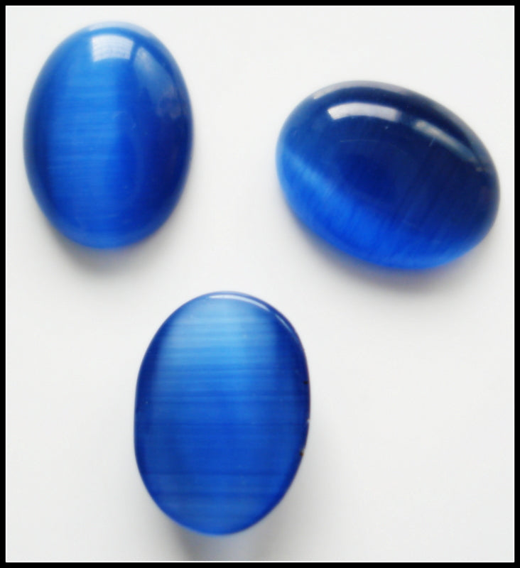 8x6 mm (SCE) Synthetic Blue Cat's Eye Oval Cabochons Glass Fiber Optics.