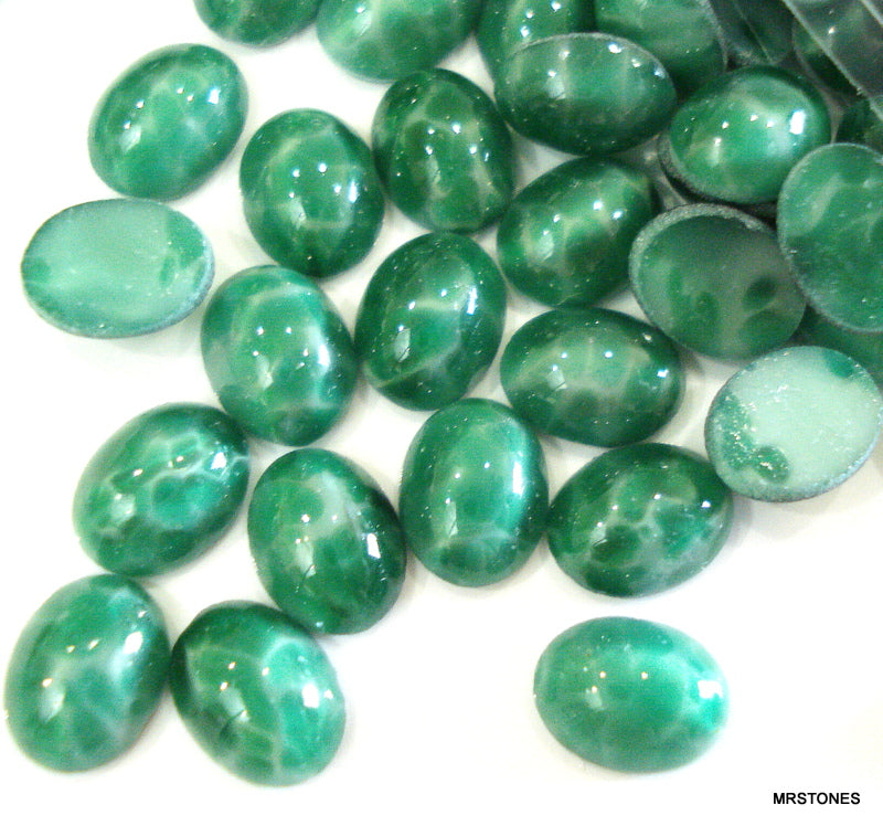 8x6 mm (1685) Glass Chinese Jade Oval Cabochons.