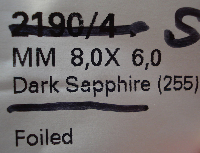 8x6 mm (2195) Glass Dark Sapphire Swarovski Silver Foil Oval Cabochons.  $0.45 each