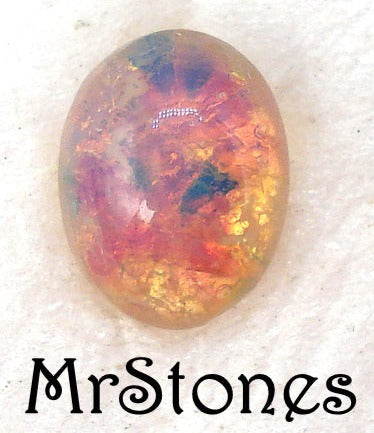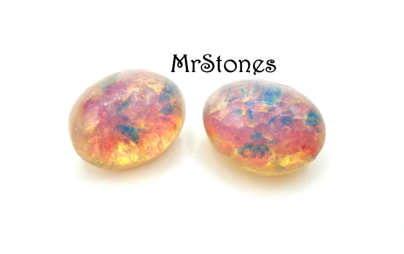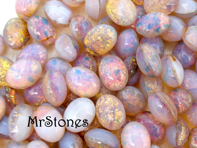 8x6 mm (3188) Fire Opal Harlequin Oval Buff Top Doublet Czech Vintage Glass Stones.