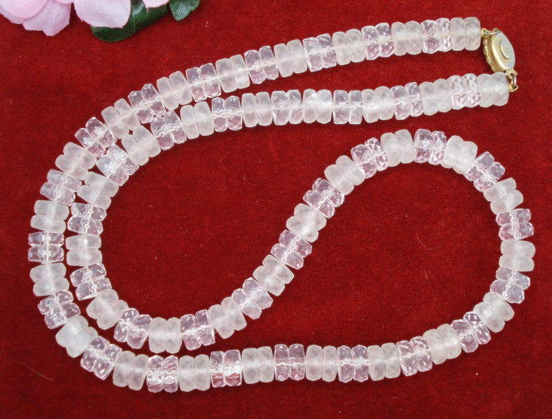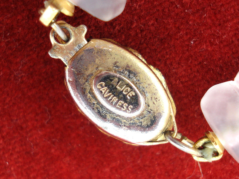 ~VINTAGE SIGNED ALICE CAVINESS 26" X 3/8" NECKLACE SOFT LT PINK ACRYLIC BEADS - CRYSTAL RHINESTONE ROSALINE CAB BOX CLASP.  Very nice condition.