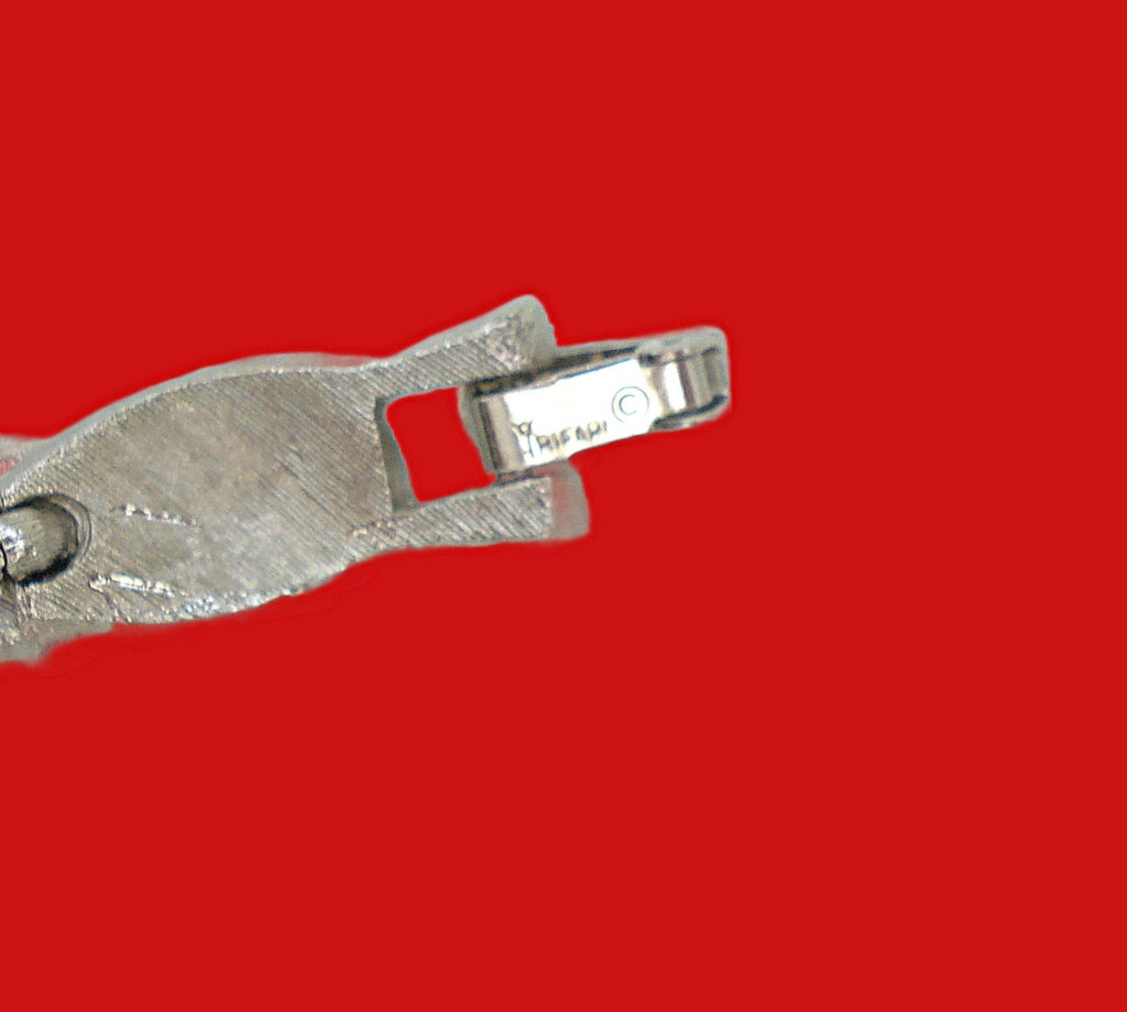 ~Crown Trifari Birthday Ribbon Bracelet - Brushed Silver Tone Crystal Rhinestones 7" x 3/8"
