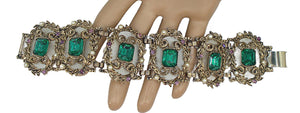 Brooch Bird in Flight Crystal Rhinestones Silver/Gold Tone Green Eye 2 3/4"