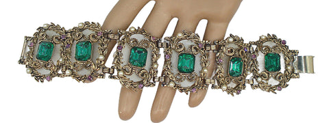 Dressy Clip on 1" Earrings Crystal Baguettes Oval Faux Pearl Cab Gold Tone