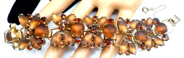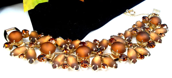 ~JULIANA~Bracelet Frosted Smoked Topaz Rhinestones in Gold Tone Setting. 7" x 1 1/4",