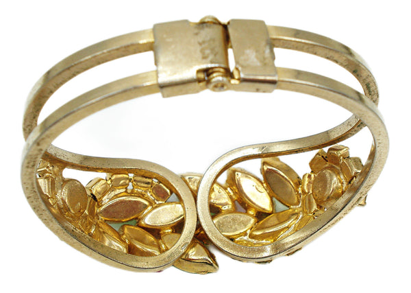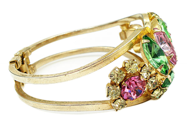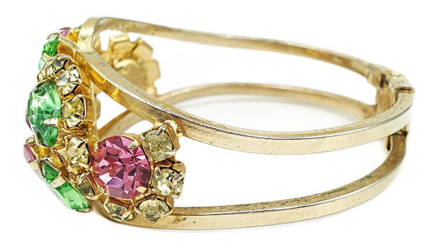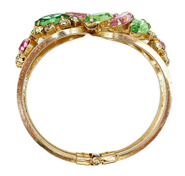 Juliana Clamper Bracelet Pastel Rose Peridot Jonquil Prong Set Gold Tone