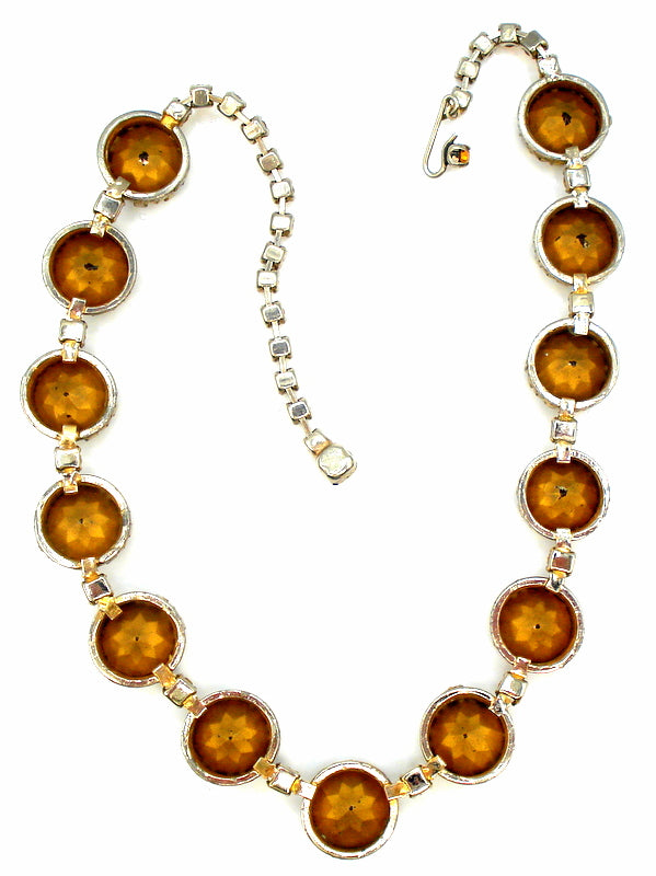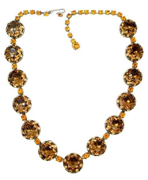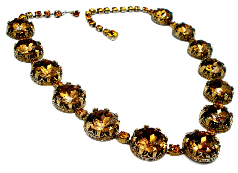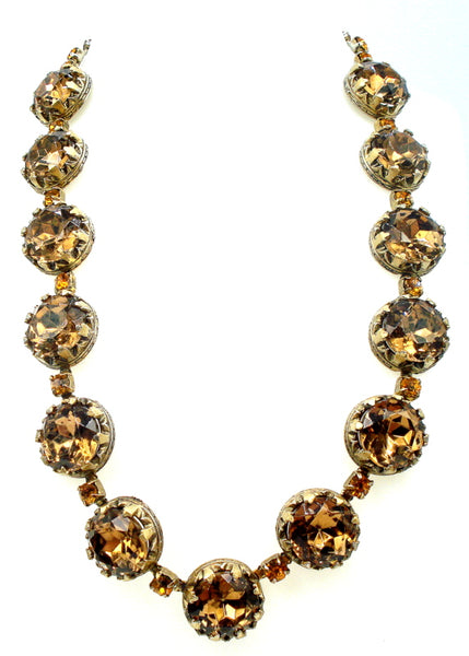 ~NECKLACE-Weighty 14mm Smoked Topaz Dentelles Topaz Rhinestones 16" x 3/4".  Complex Prong Setting.  So Pretty for Fall!  Very Nice Condition.