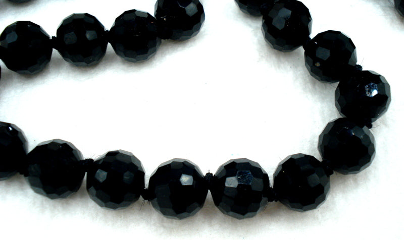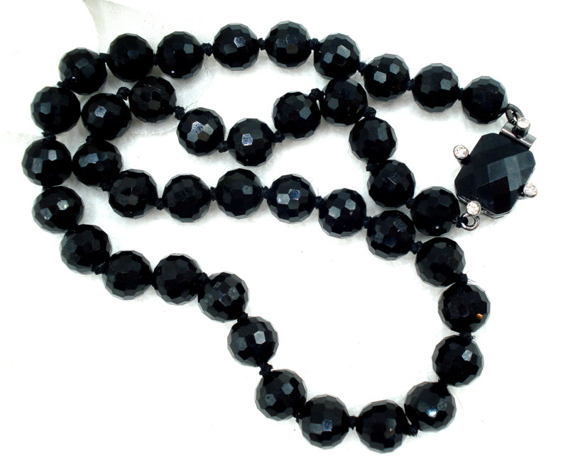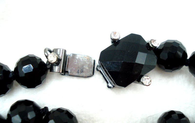 ~RLL Ralph Lauren Glass Black Bead Necklace 3/8" Knotted, Gunmetal Box Clasp with Crystal Rhinestone Accents.   17"